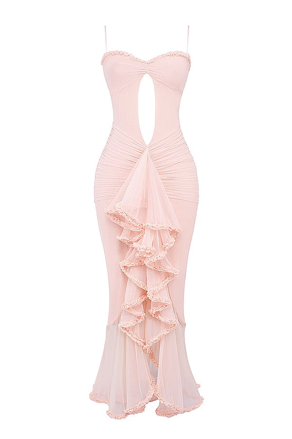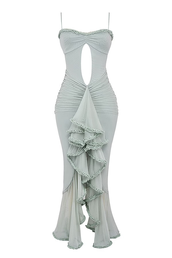 El vestido 'Adriana' evoca los estilos vintage más glamurosos con su hermosa silueta y su coqueto diseño con volantes. Está detallado con los toques más encantadores para que te sientas elegante y glamurosa en esas ocasiones especiales.