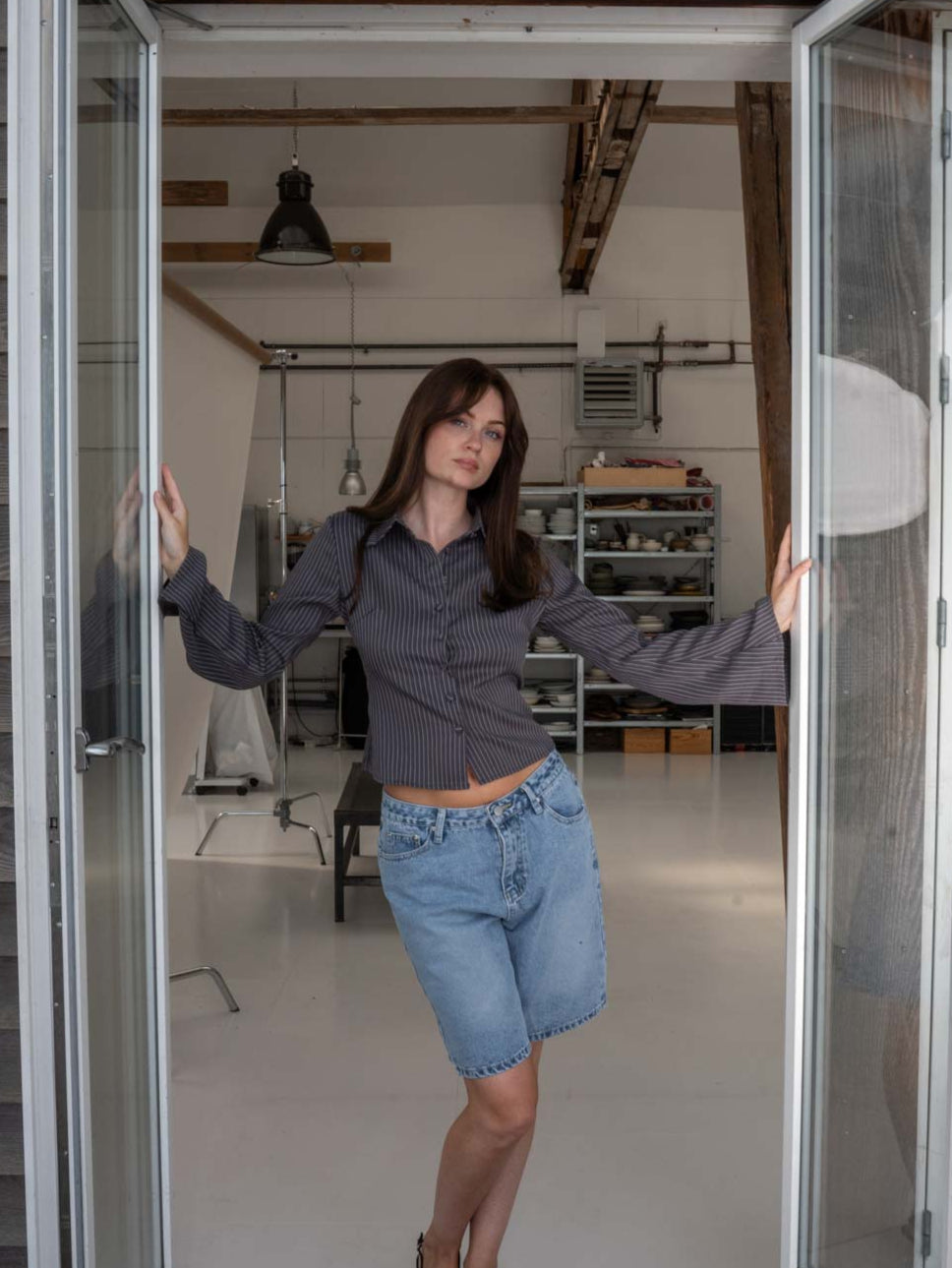 Our Alicia tailored shirt combines a classic look with modern details. The cropped length and long sleeves create a cool silhouette, while the sleeves fall loosely at the hands adding a feminine touch. The shirt features front button closure and a neat collar at the neck, completing the elegant look. Perfect for both everyday wear and when your outfit needs an extra lift.