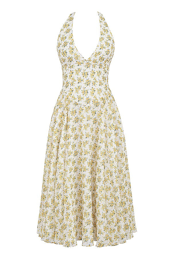 'Bianca' destacarΓ‘ dondequiera que lo uses gracias a su bonito estampado y su corte inspirado en el estilo vintage. Confeccionado en georgette fluido, 'Bianca' tiene un escote atrevido, un cuello halter favorecedor y se vuelve con una espalda descubierta.