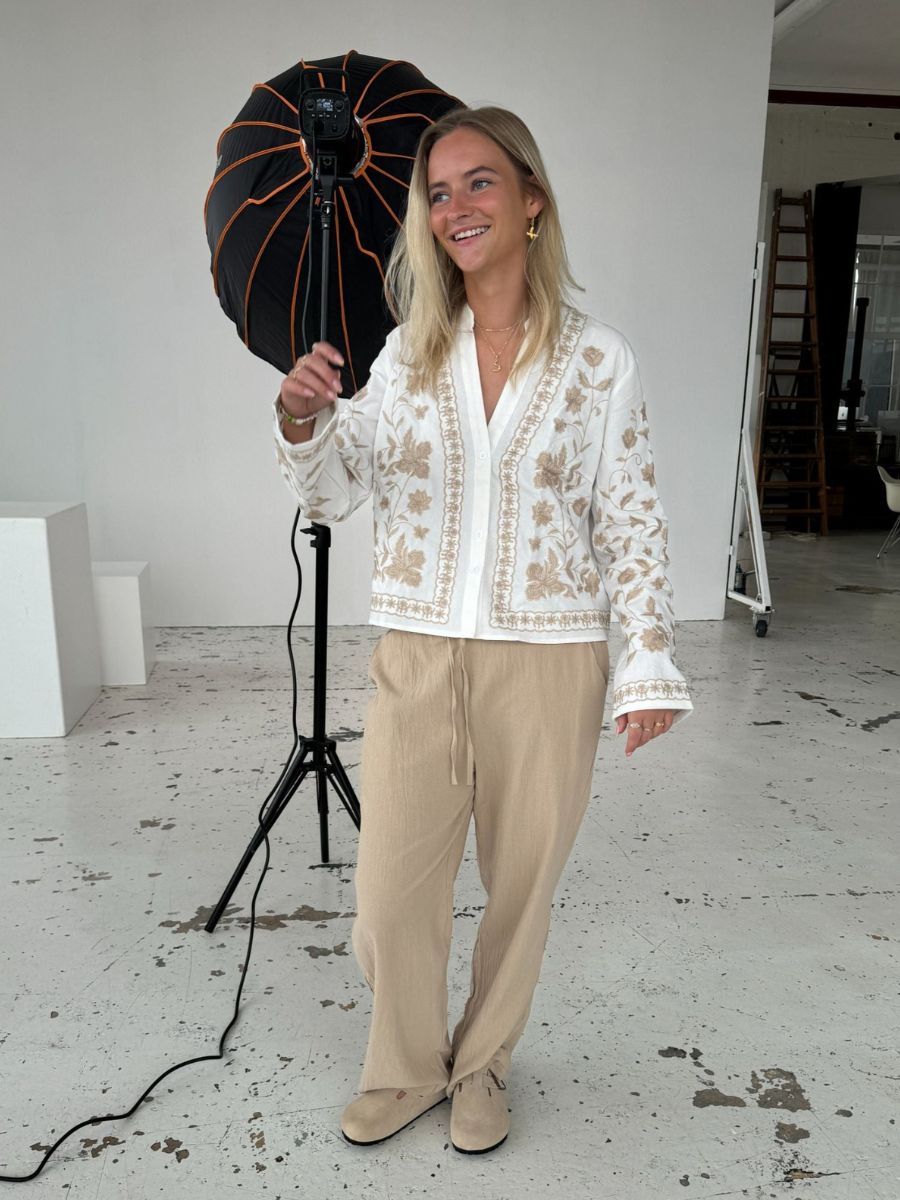 Our Charlotte linen pants have an elastic waistband and tie at the waist and are produced in a linen-like material. The pants have a straight look and are super soft✨