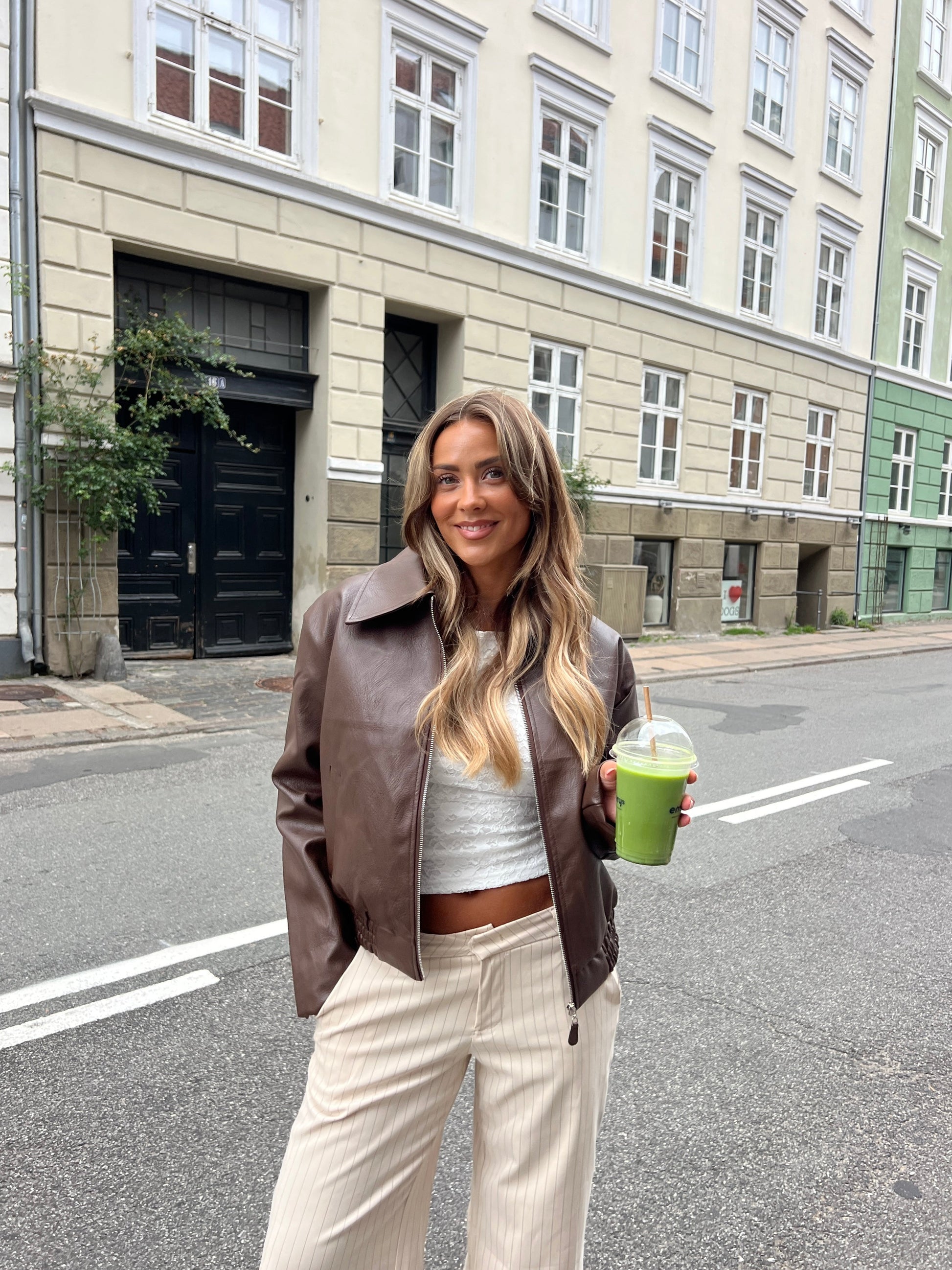 The Emmy jacket is in the most beautiful brown color and is made of a PU material. The jacket has side pockets and a zipper closure. The perfect leather jacket for women in PU material β¨