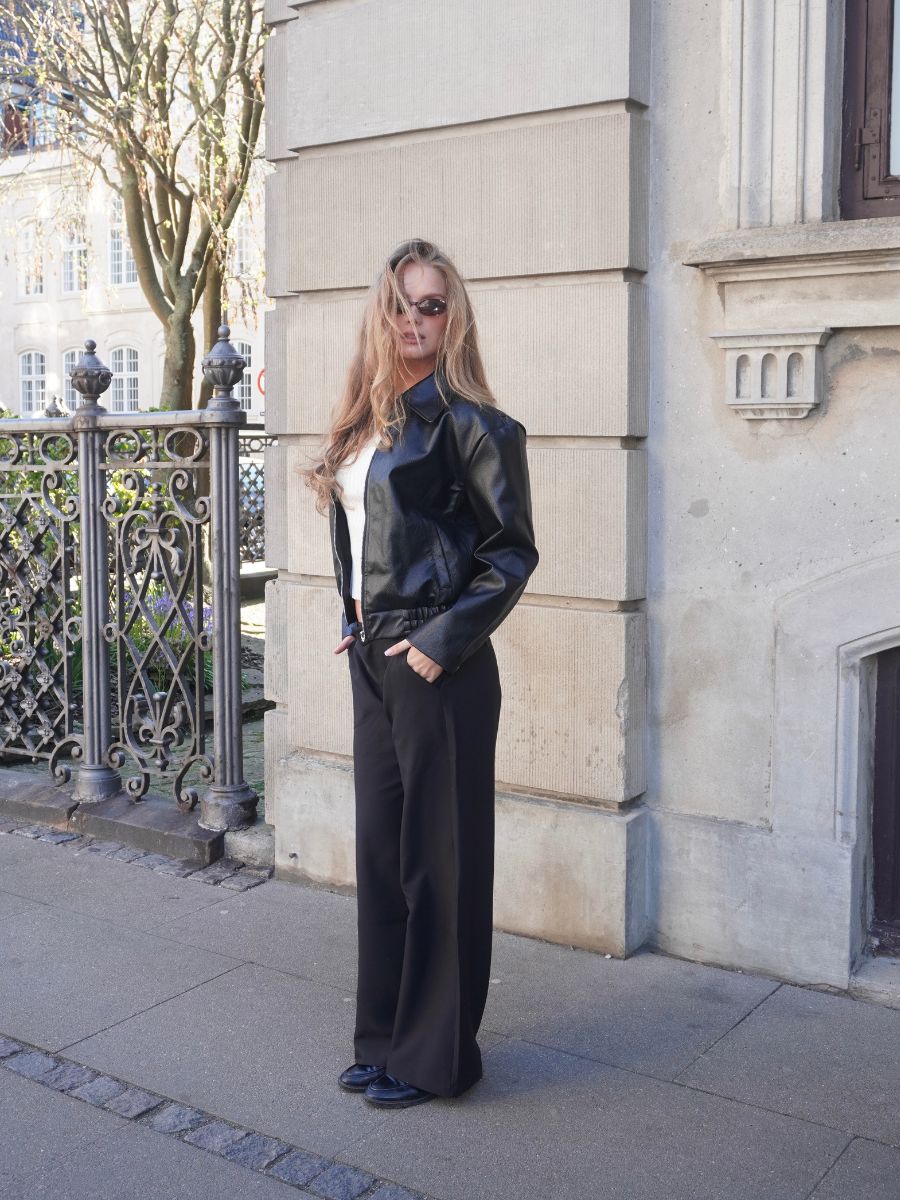 The Emmy jacket is in the most beautiful black color and is made of a PU material. The jacket has side pockets and a zipper closure. The perfect leather jacket for women in PU material β¨