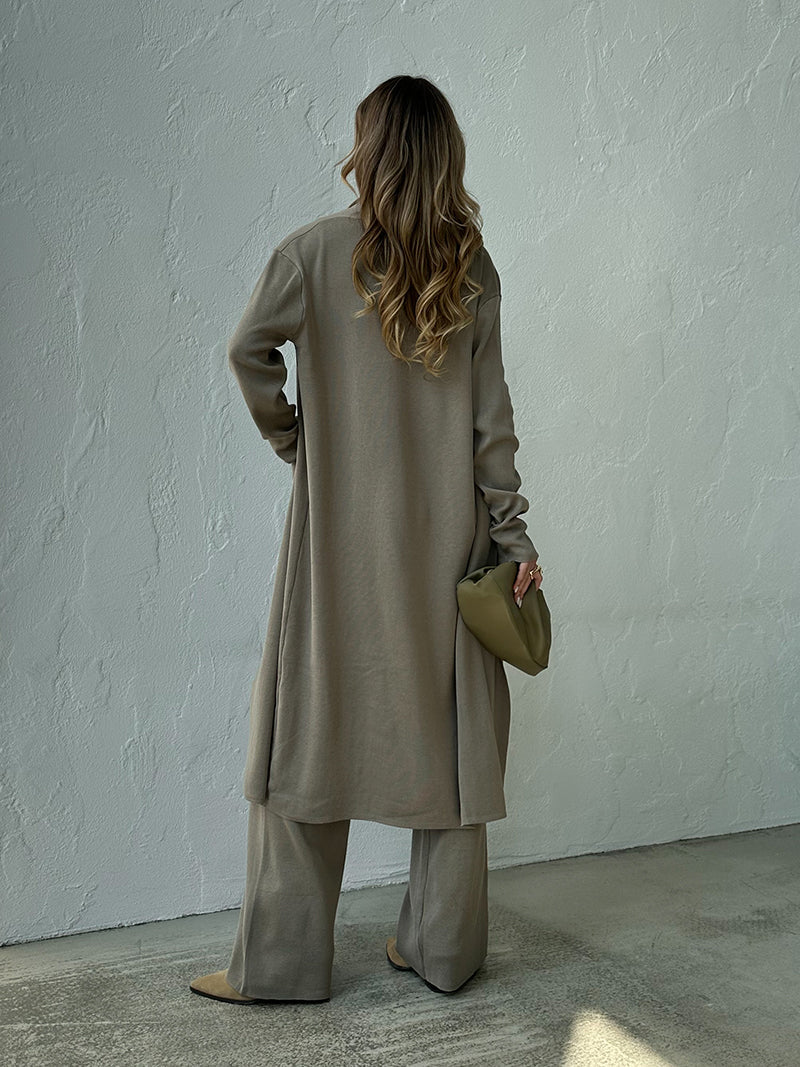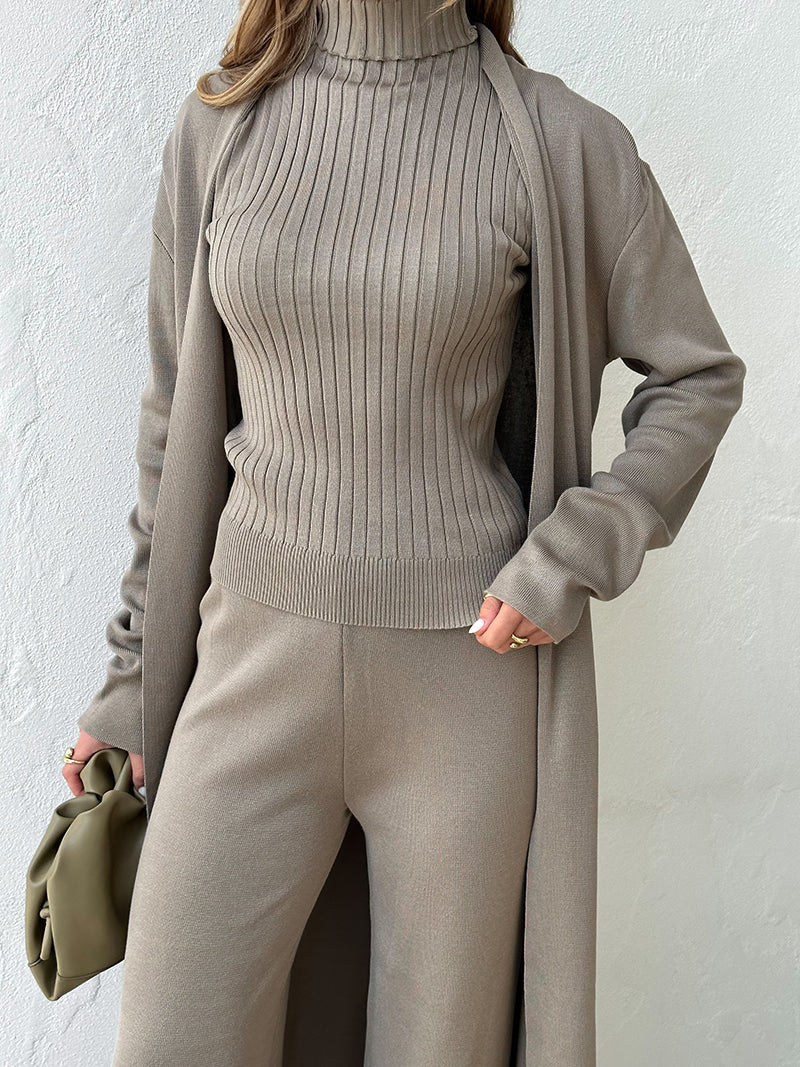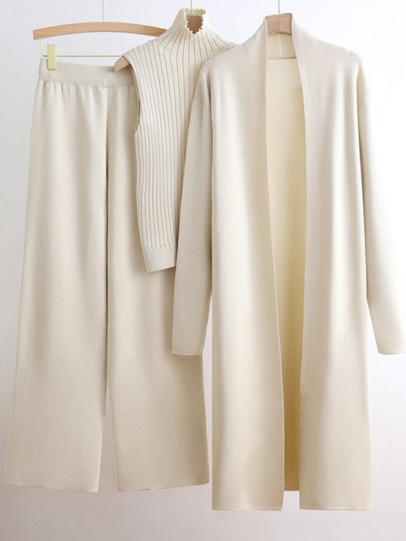 El Conjunto Florine es tu opción ideal para cualquier ocasión. Con pantalones de sastre, un elegante cárdigan y un top versátil, este conjunto combina magistralmente comodidad y elegancia atemporal. Ya sea que te vistas para un evento formal o quieras elevar tu estilo diario, el Conjunto Florine garantiza que irradies refinamiento con facilidad.