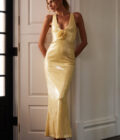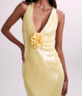 El Vestido Freya es una cautivadora combinación de elegancia y brillo, diseñado para destacar en cualquier evento. Este vestido maxi sin mangas cuenta con un pronunciado escote en V que se afina hacia una cintura ajustada, realzada por un delicado aplique de rosa en 3D con diamantes en el centro. Los tirantes anchos y de soporte se cruzan graciosamente en la espalda abierta, creando un look sofisticado y seductor. Confeccionado con tela de lentejuelas brillantes, el Vestido Freya abraza el cuerpo en los lugares correctos, ofreciendo una silueta favorecedora. Perfecto para quienes desean encarnar glamour y gracia, este vestido es un espectáculo desde cualquier ángulo.