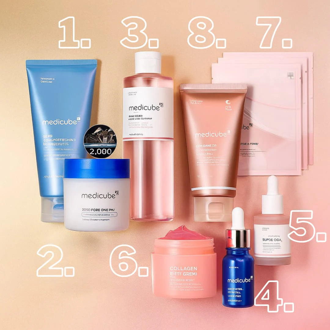 The Glass Glow Skincare Set includes 8 top-selling essentials for a complete skincare routine: