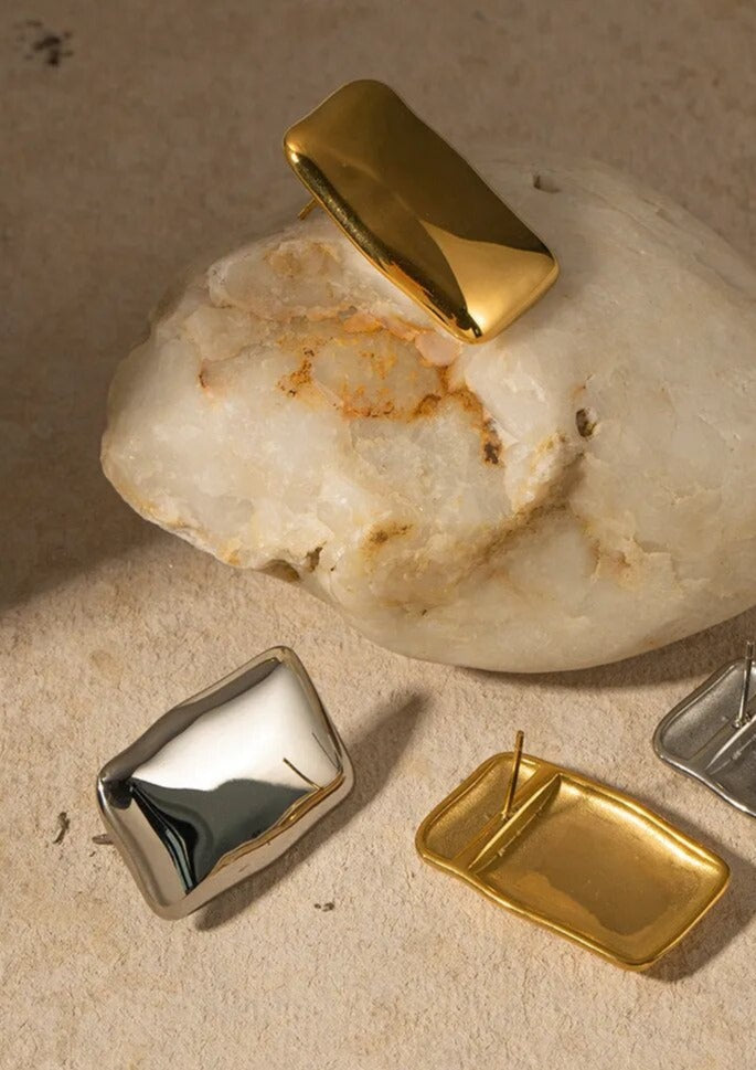 Make a bold statement with the Lillian Earrings, a modern take on timeless elegance. Featuring a distinctive, distorted rectangular shape, these earrings bring a contemporary edge to any outfit. Designed for both style and comfort, they are the perfect accessory to elevate your everyday or evening look.