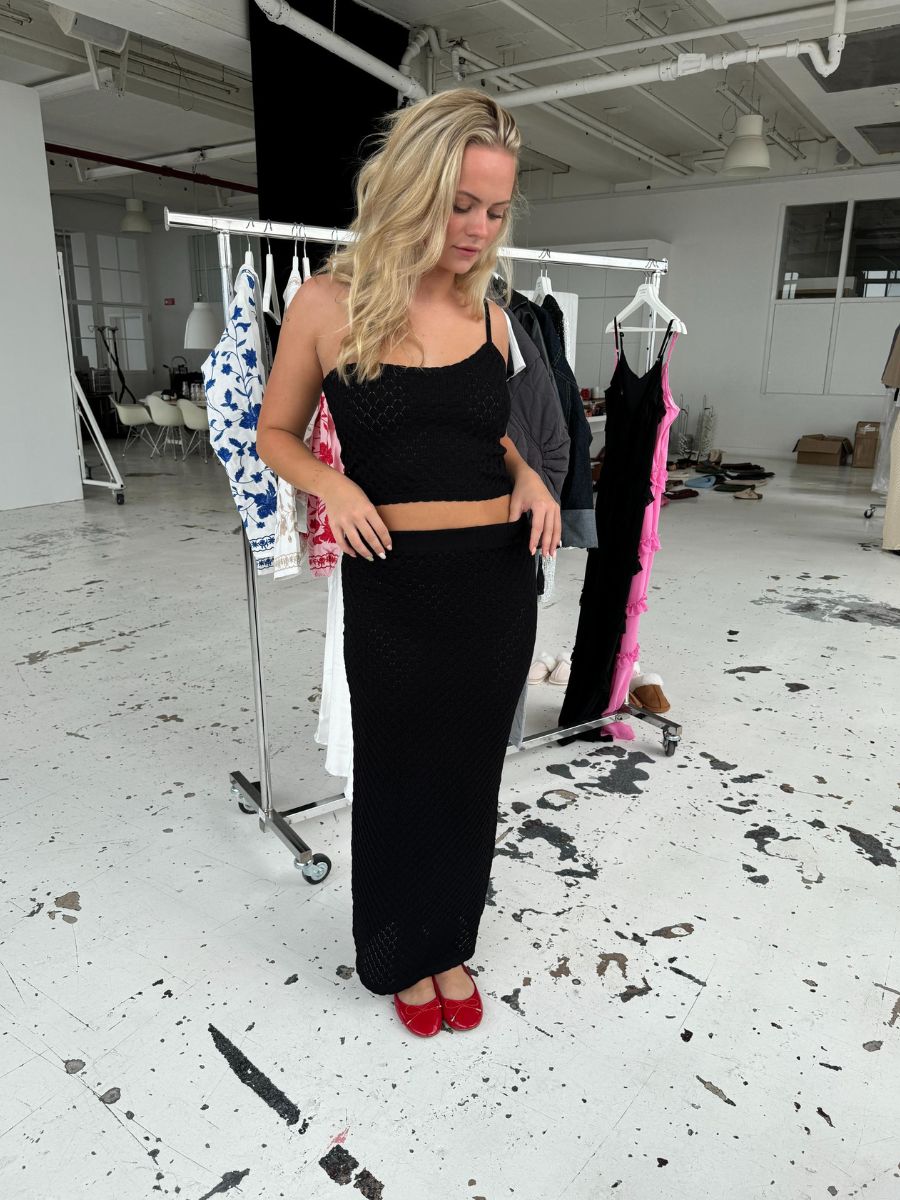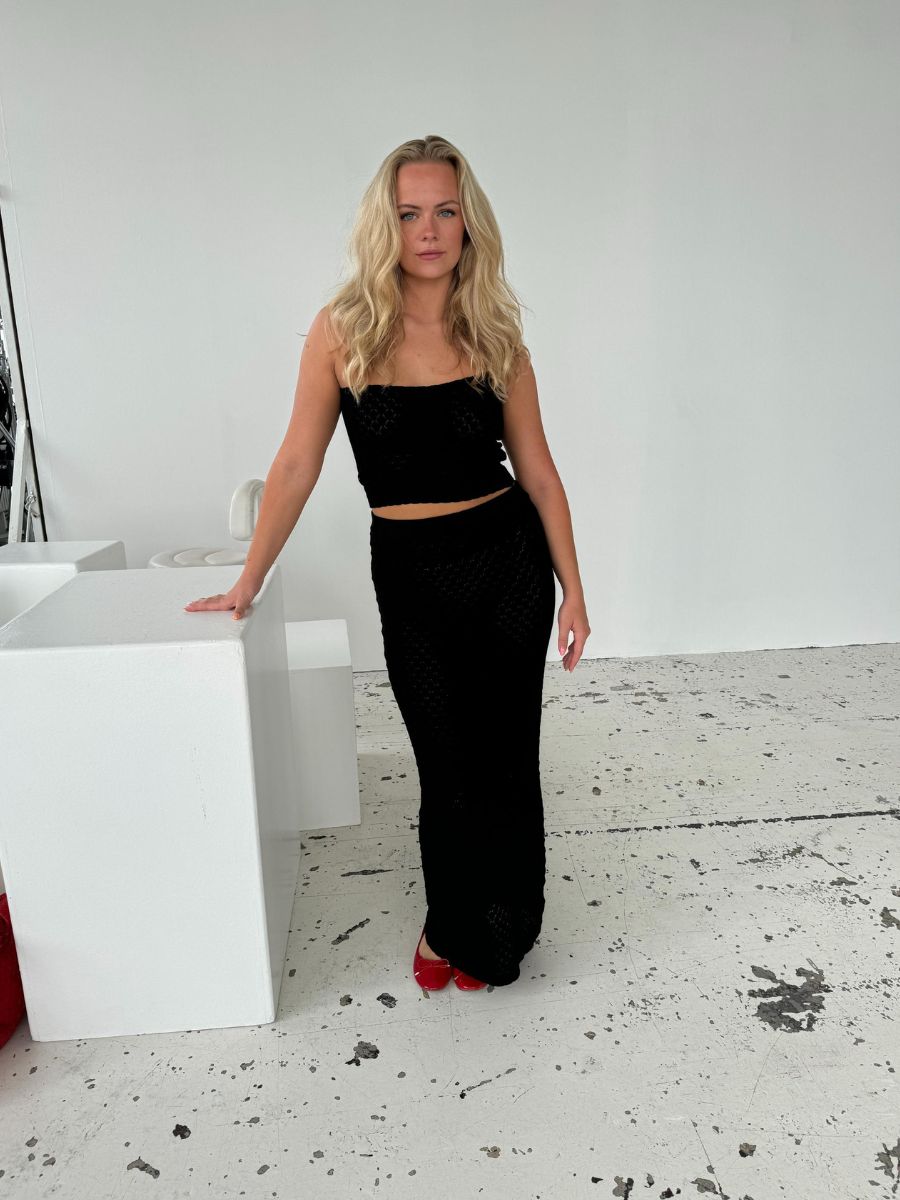 The Maddy knit top comes in the softest and most beautiful black color, with the most beautiful knit pattern. The top can easily be styled on its own or with the matching skirt if you want a complete set. Perfect for both everyday wear and weekends when you want to be comfortable and stylish at the same time.