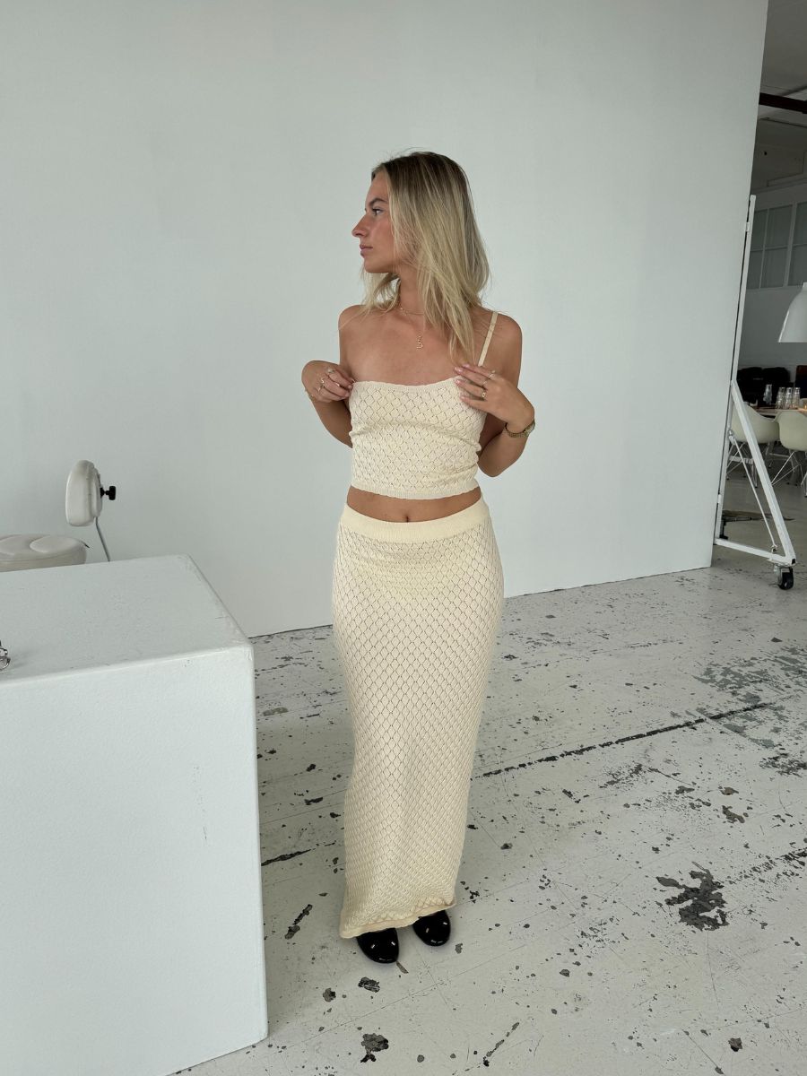 The Maddy knit top comes in the softest and most delicate cream white color, with the most beautiful knit pattern. The top can easily be styled on its own or with the matching skirt if you want a complete set. Perfect for both everyday wear and weekends when you want to be comfortable and stylish at the same time π