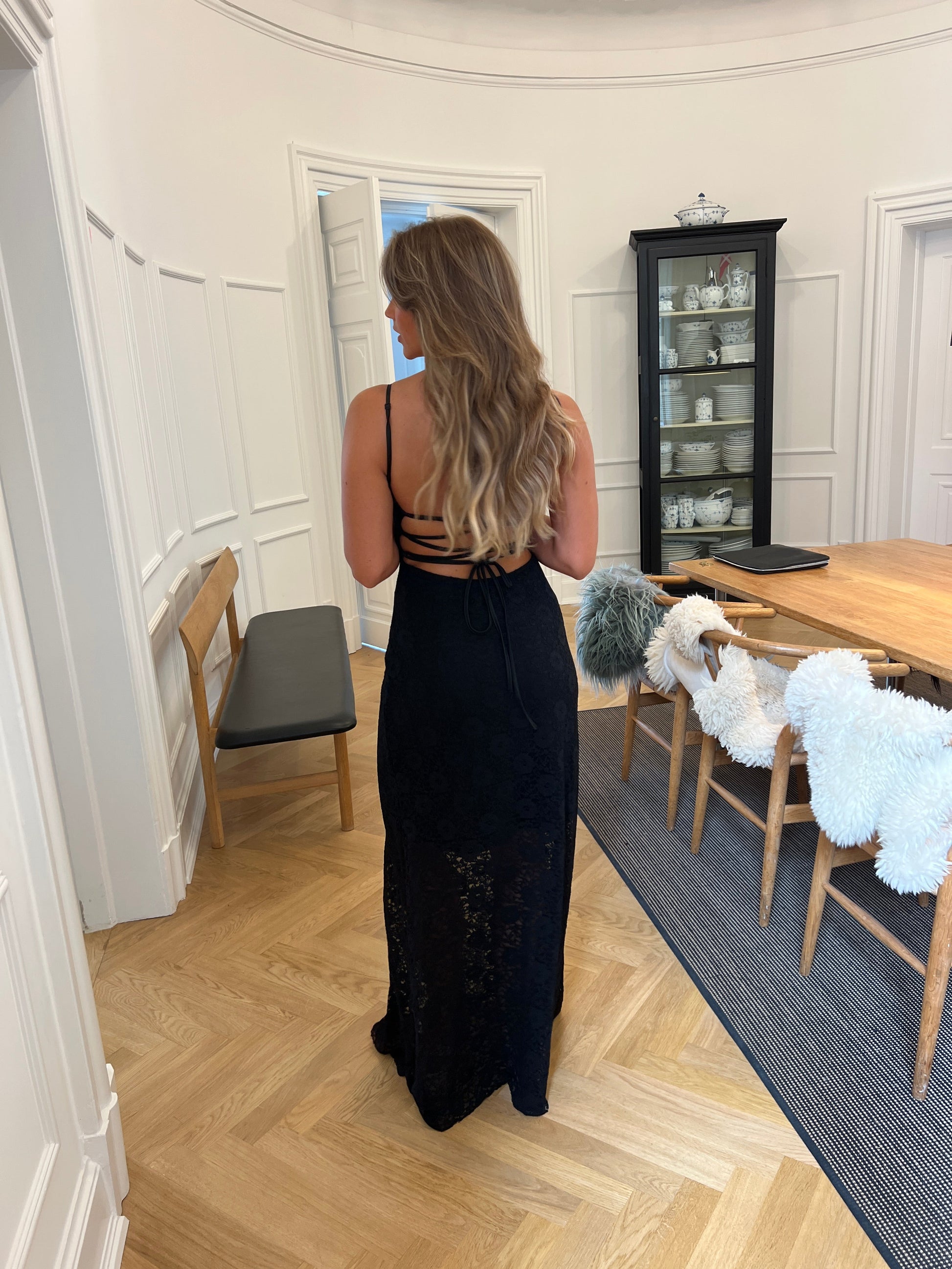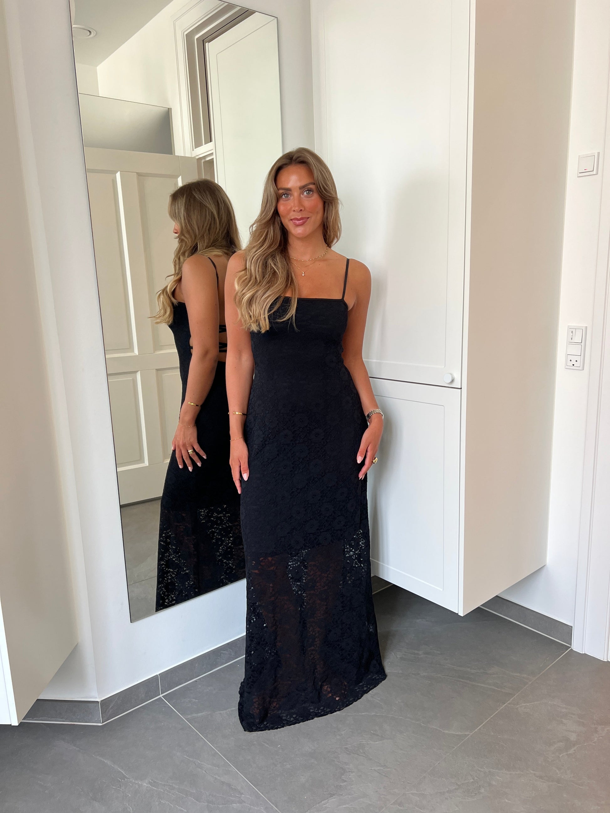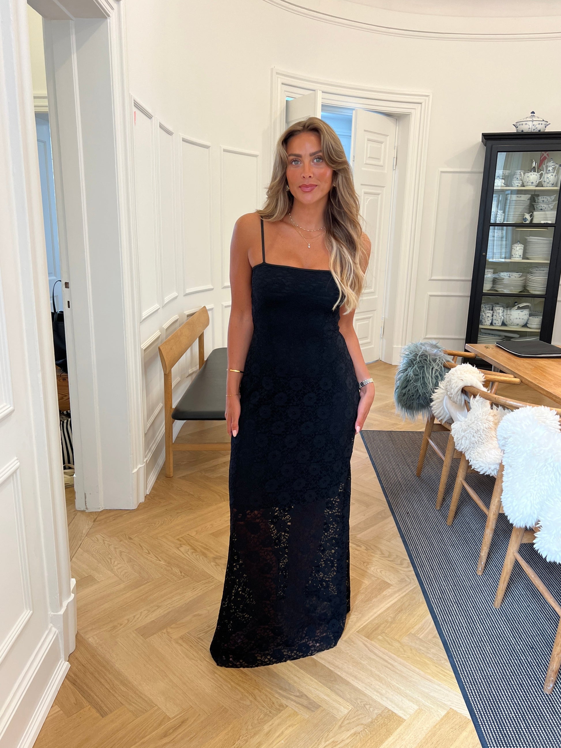 Our Oura maxi lace dress in black is designed in beautiful lace material. The black slip makes the dress opaque and comfortable to wear without compromising on style.