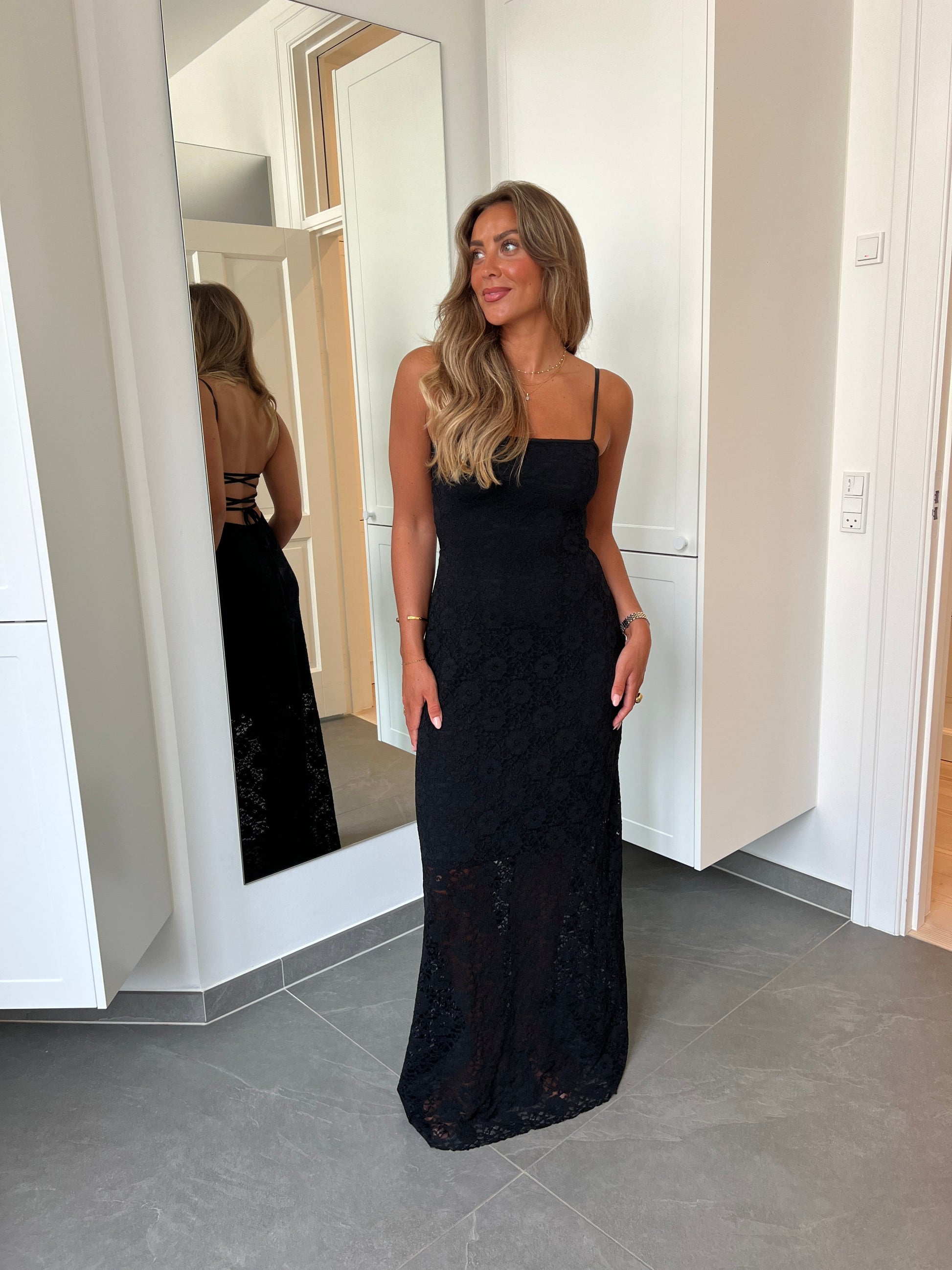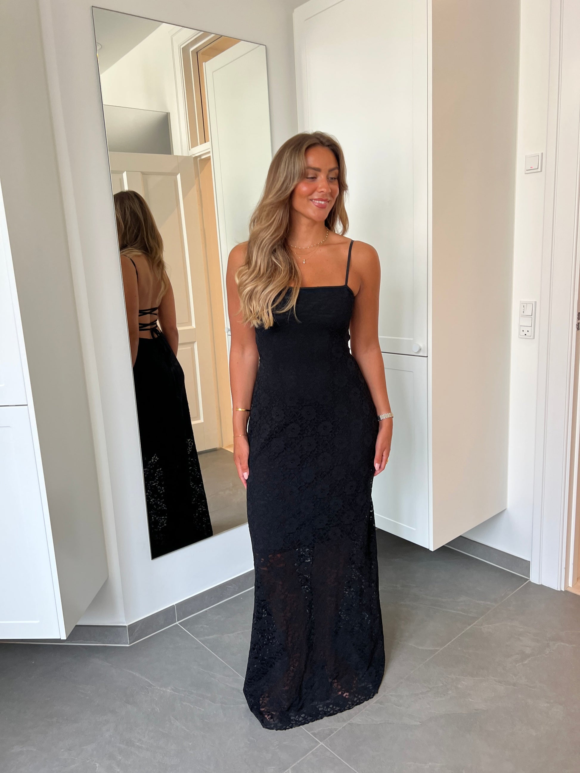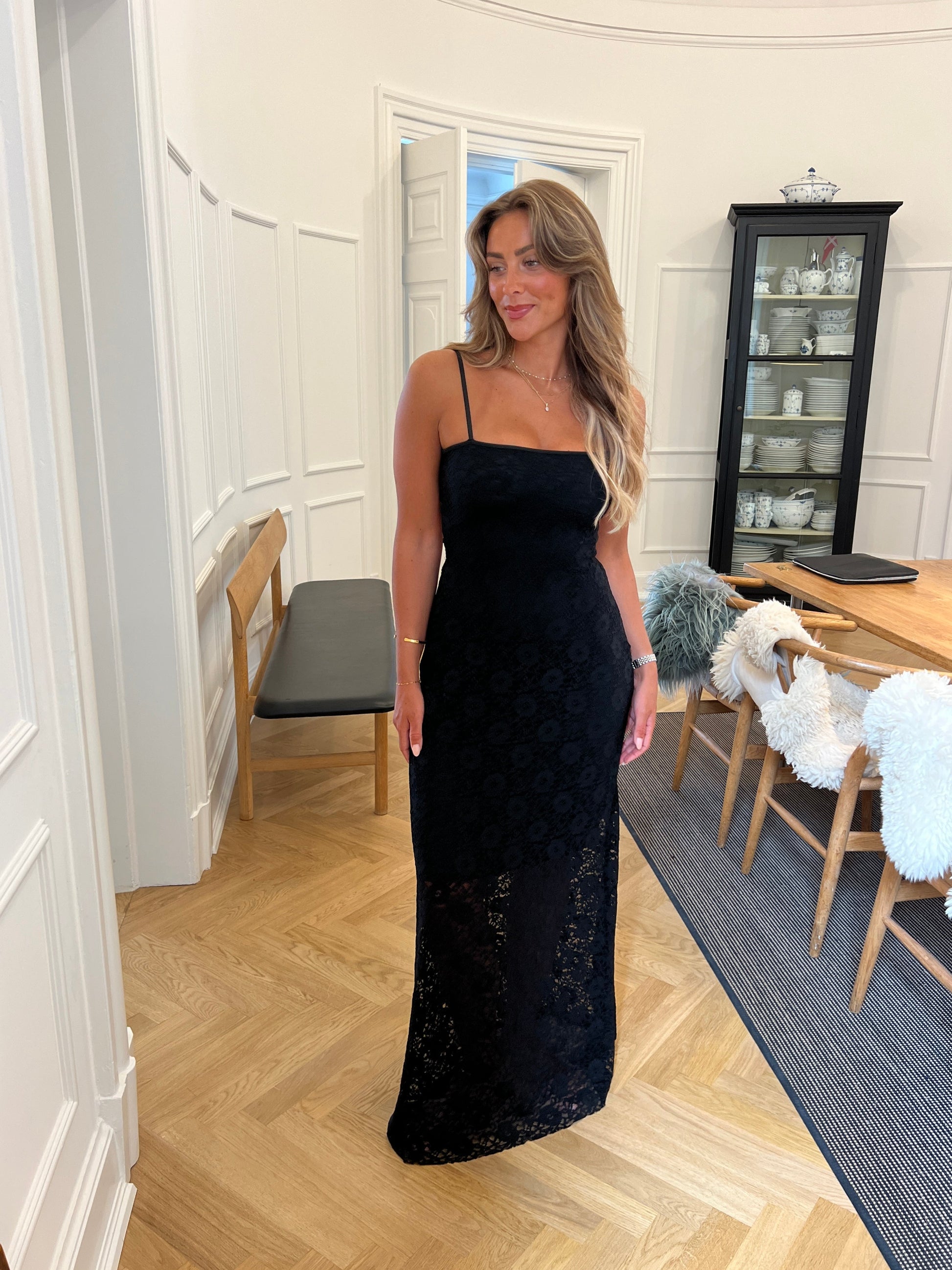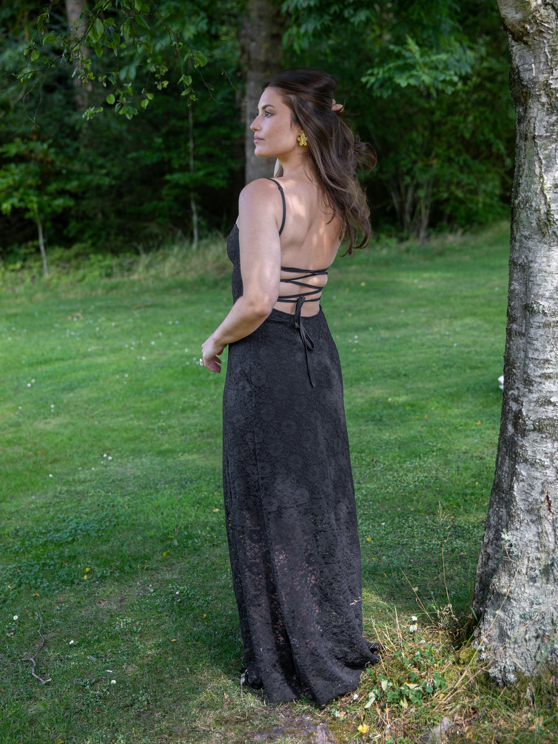 Our Oura maxi lace dress in black is designed in beautiful lace material. The black slip makes the dress opaque and comfortable to wear without compromising on style.
