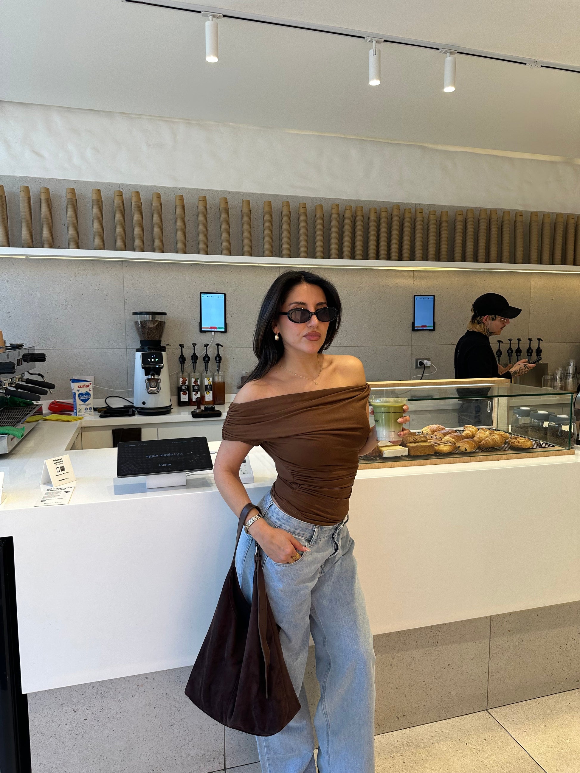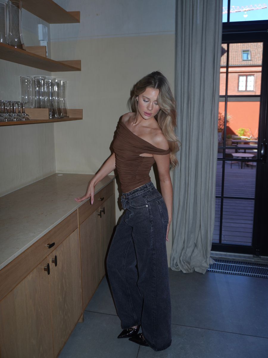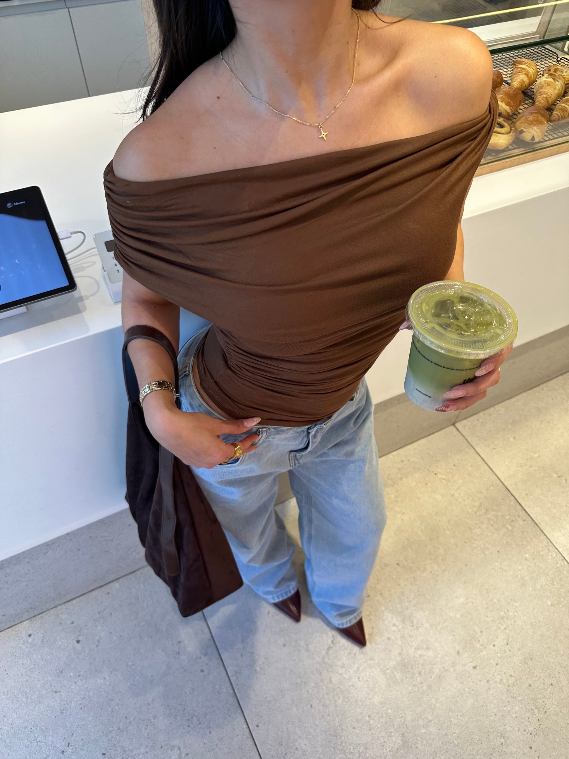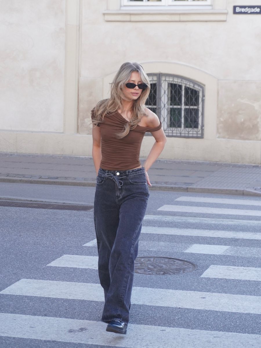 The Paola top in brown is an elegant, close-fitting top that you can wear again and again. It has a nice little extra detail in the form of a ribbed design and off-shoulder look that can easily be dressed up or downβperfect for everything from a night out to a regular day with jeans and sneakers π€