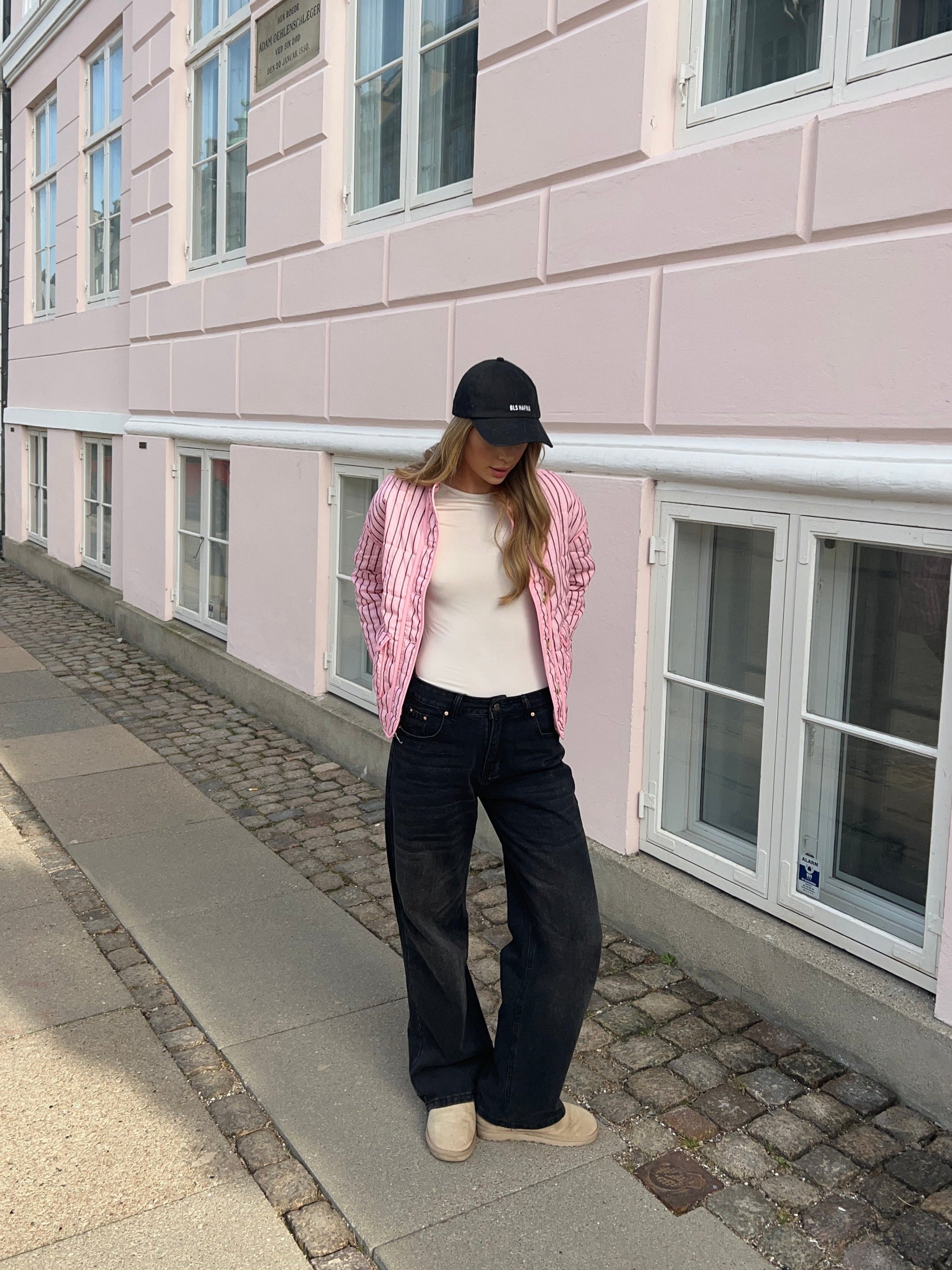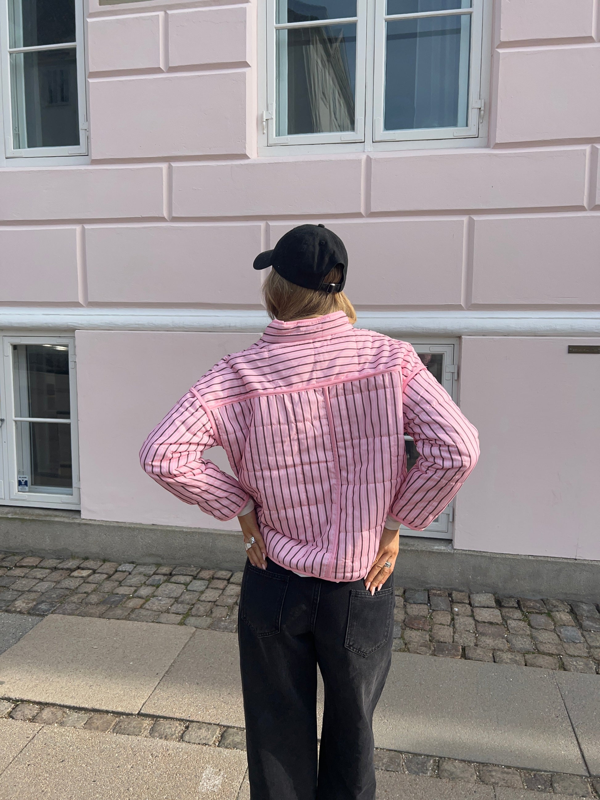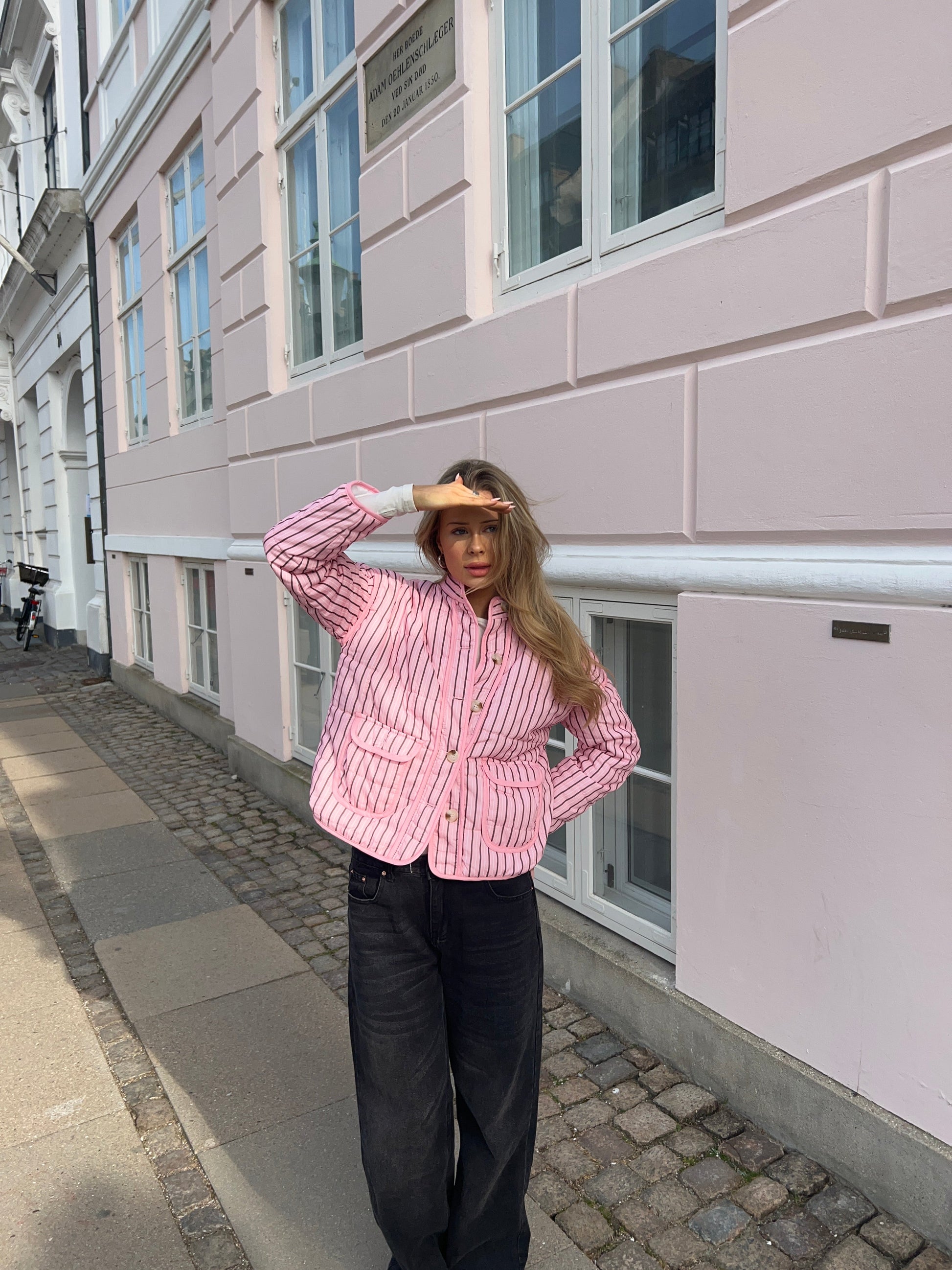 Our Rose quilted jacket is a feminine and cozy transitional jacket in the finest shade of pink with narrow stripes. It has a lightly padded structure that provides both comfort and warmth, and the two practical front pockets make it both functional and stylish. The jacket fastens with delicate buttons at the front and has a relaxed cut that makes it easy to style with everything from dresses to jeans. A great choice for cooler days when you still want to add a little color to your look.