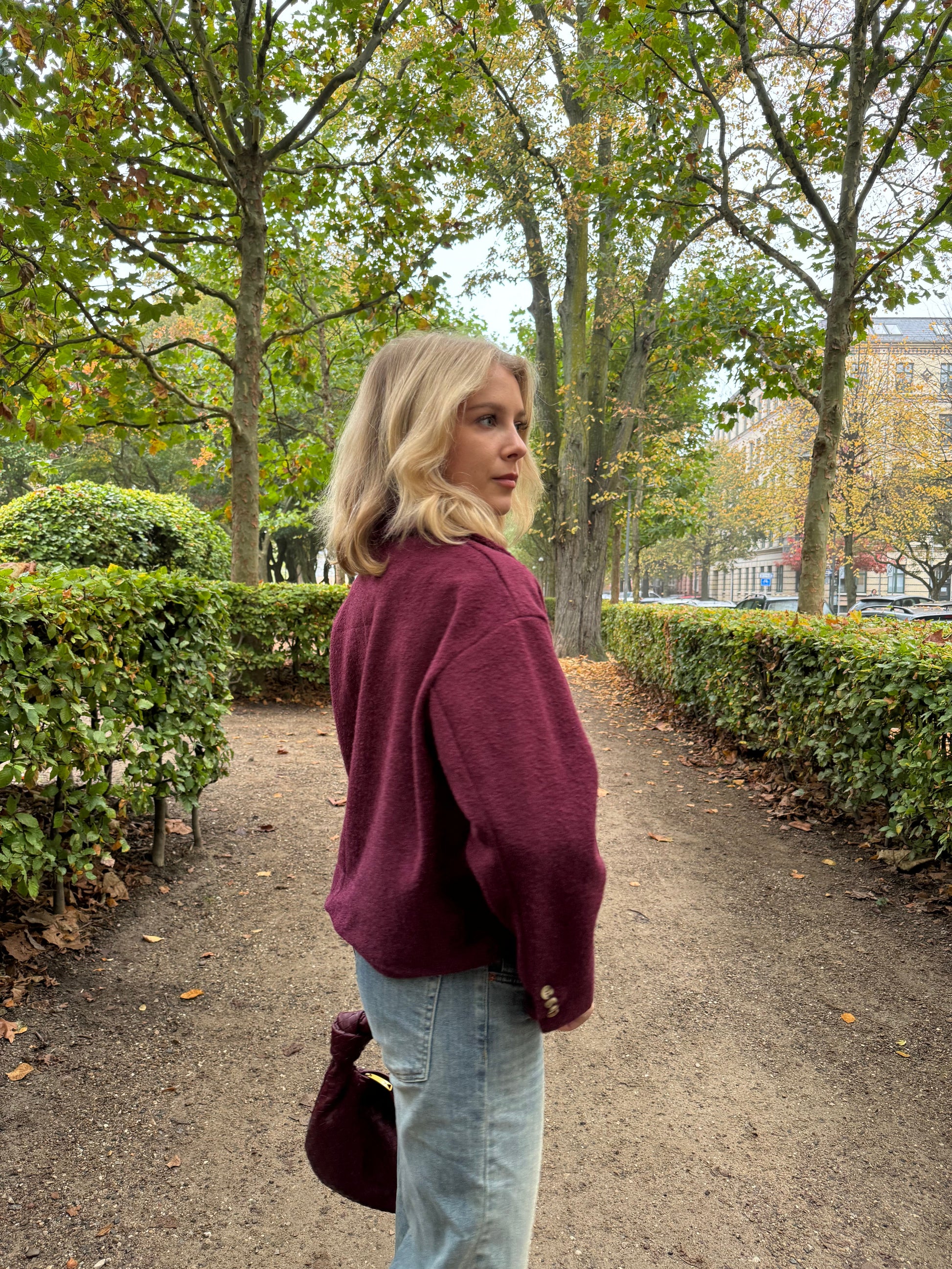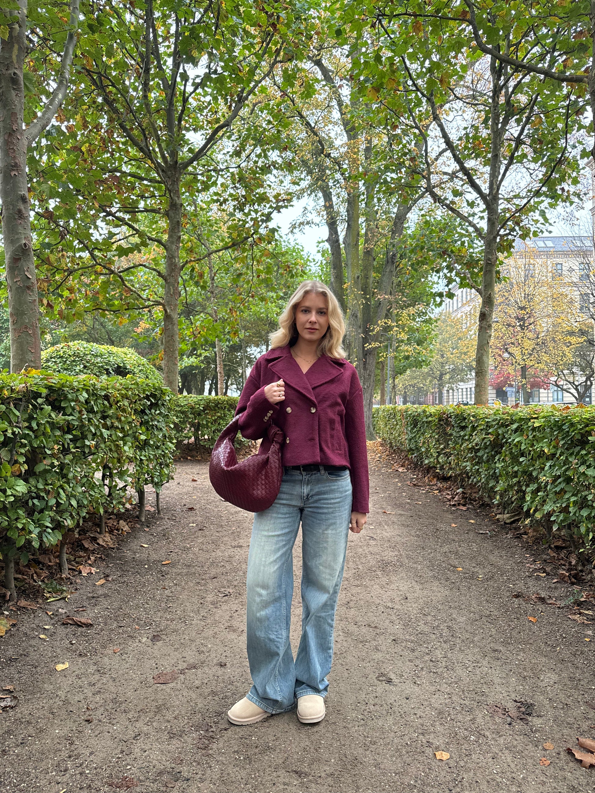 Our Zia trenchcoat comes in a wool-like material. The jacket comes in 3 different colors and has a front button closure ❄️