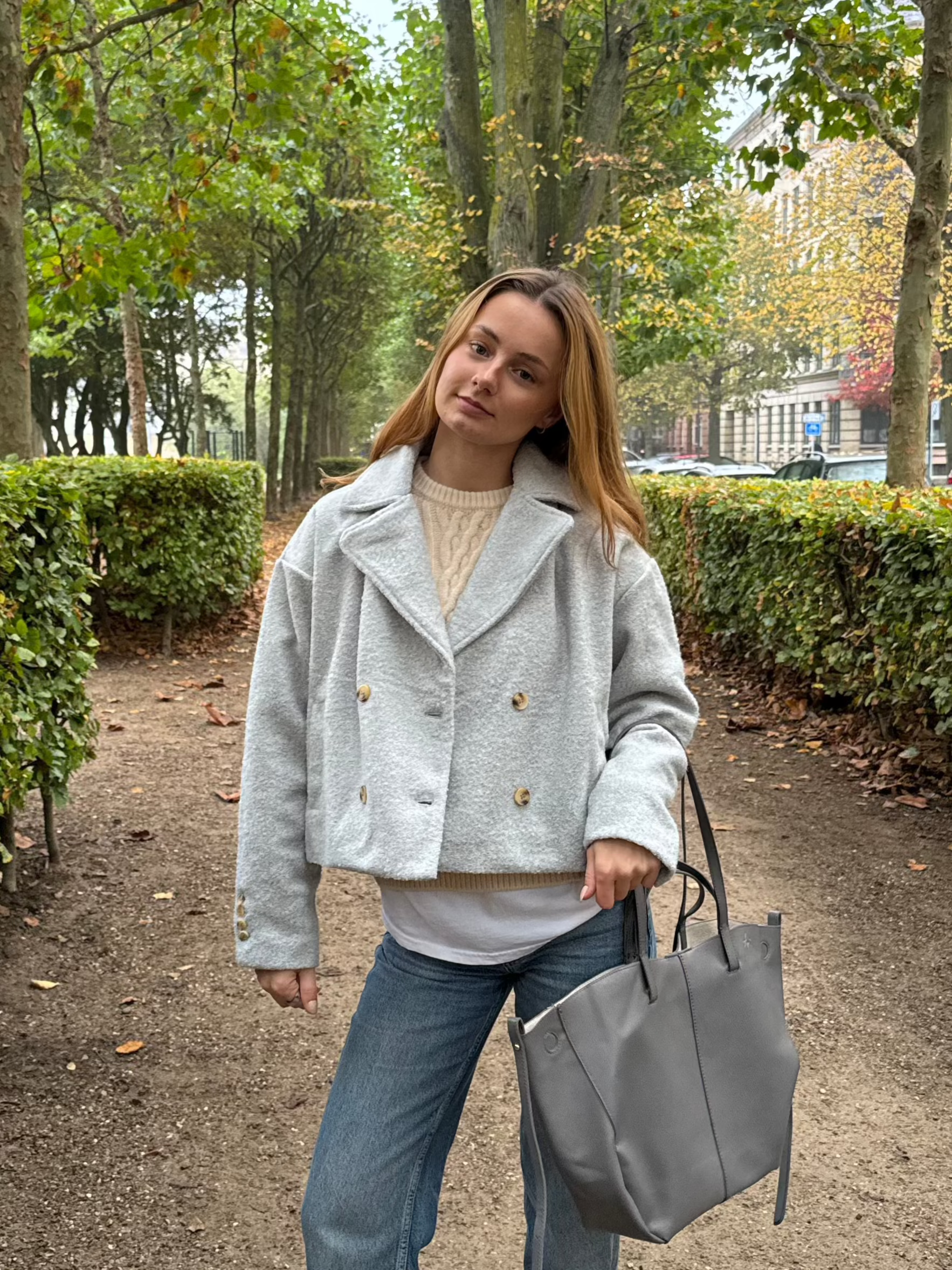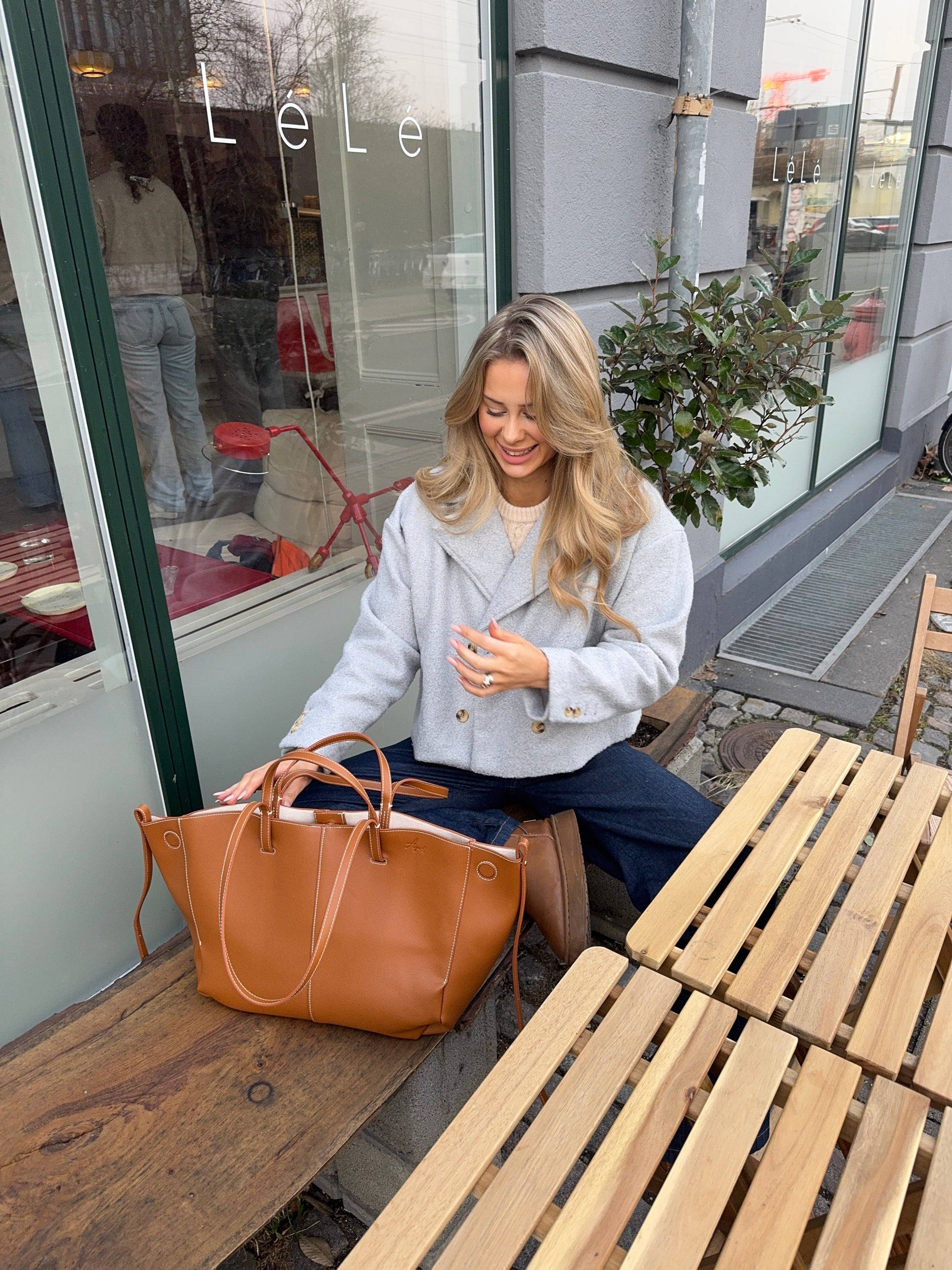 Our Zia trenchcoat comes in a wool-like material. The jacket comes in 3 different colors and has a front button closure ❄️